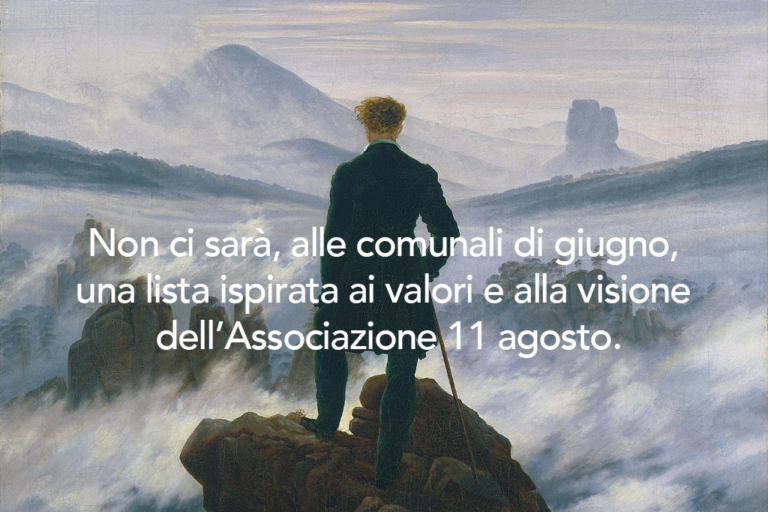 Non ci sarà, alle comunali di giugno, una lista ispirata ai valori e alla visione dell’Associazione 11 agosto. Siamo nati